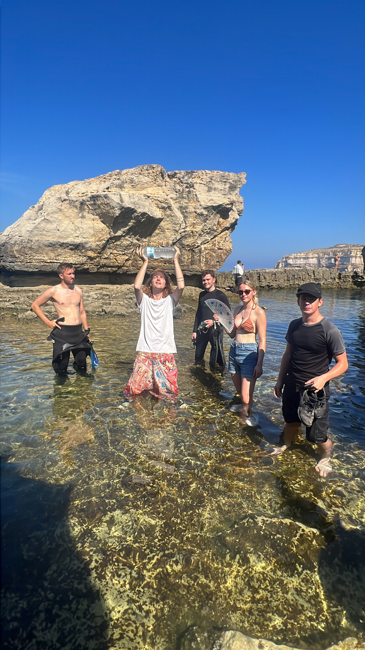Tuesday started with a later start with a tank pick up time of 9.30. The dive site plan for that day was Blue Hole and Inland Sea. After a dive briefing by Harry, some explored out to see where the fallen Azure Window had stood. Some tried to place where Azure window once was, trying to find recognisable scenes such as the Dothraki Marriage from season 1 of Game of Thrones and The Count of Monte Cristo.